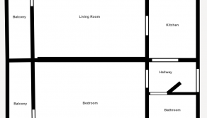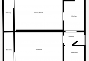 - obývačka + spálňa + kuchyňa + kúpeľňa s WC + chodba