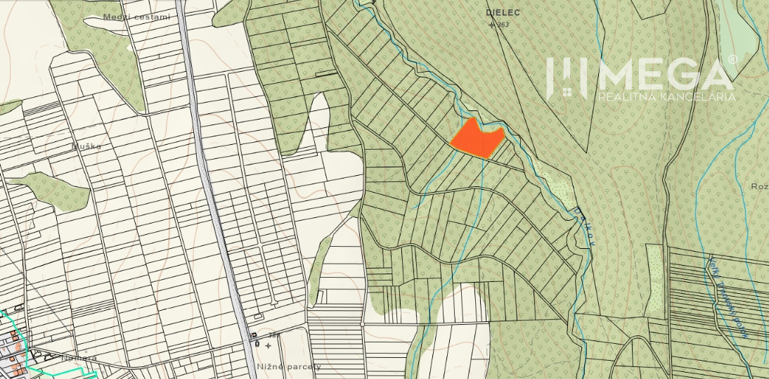 Rozsiahly pozemok má rozlohu 9 439 m2 a jeho šírka je cca 110 m. Pozemok sa nachádza v tichom prírodnom prostredí a je vhodný ako investícia, možno rekreačný pozemok, alebo priestor pre voľno časové či hospodárske využitie. Nezastavaná lokalita poskytuje súkromie, pokoj a prirodzený charakter územia. Na liste vlastníctva je aktuálne vedený ako trvalý trávny porast, reálne je to lesný pozemok.