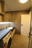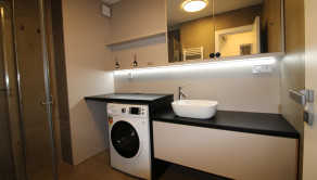 Tento byt je ideálnou voľbou pre nájomníka, ktorý hľadá vysoký štandard a estetiku. Interiér bol navrhnutý bytovým dizajnérom, čo zaručuje nielen vizuálnu harmóniu, ale aj maximálnu funkčnosť. Súčasťou vybavenia je moderná kuchyňa so zabudovanými spotrebičmi (vrátane umývačky riadu), klimatizácia pre tepelný komfort a štýlová kúpeľňa s práčkou. Veľkým benefitom je výťah dostupný priamo od prízemia a vlastné parkovacie miesto už zahrnuté v cene.