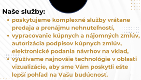V cene nehnuteľnosti je zahrnutý aj kompletný právny servis, vypracovanie zmluvy a poplatky spojené s prevodom vlastníckych práv.