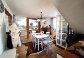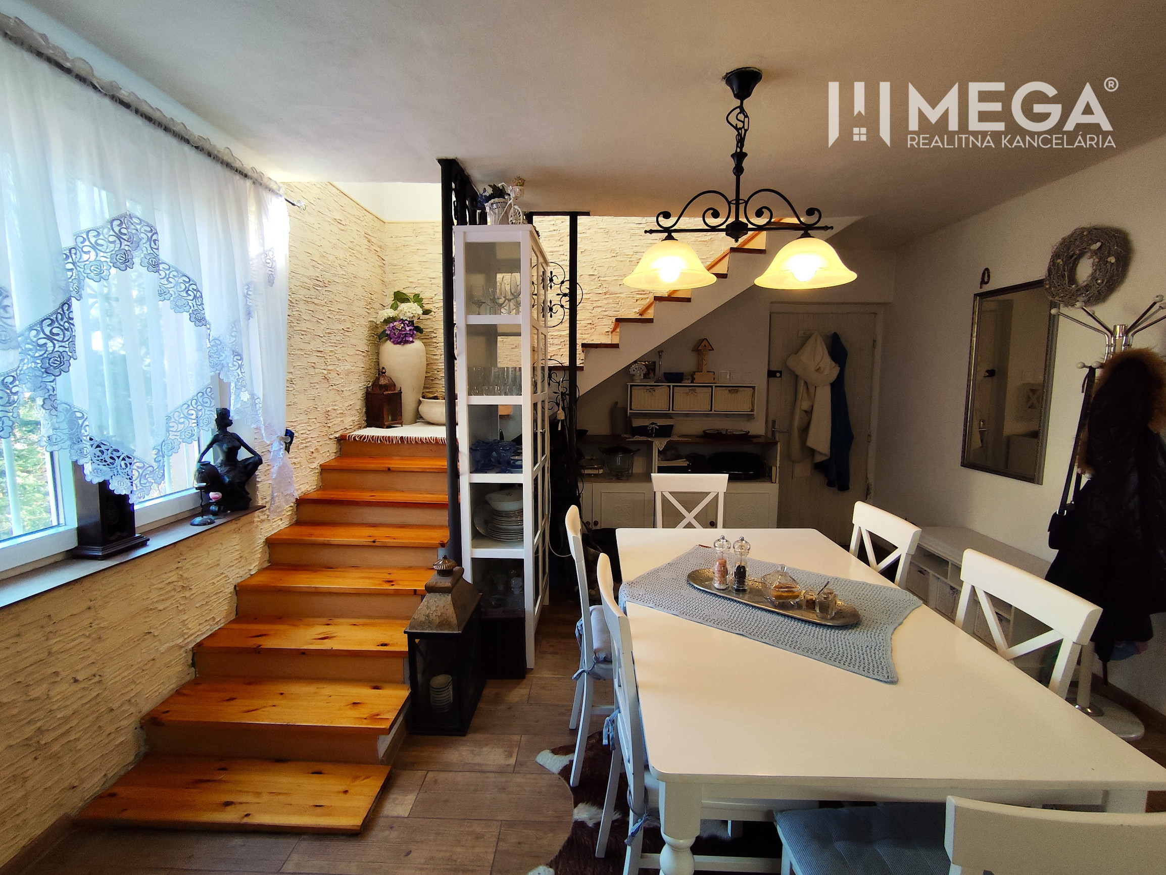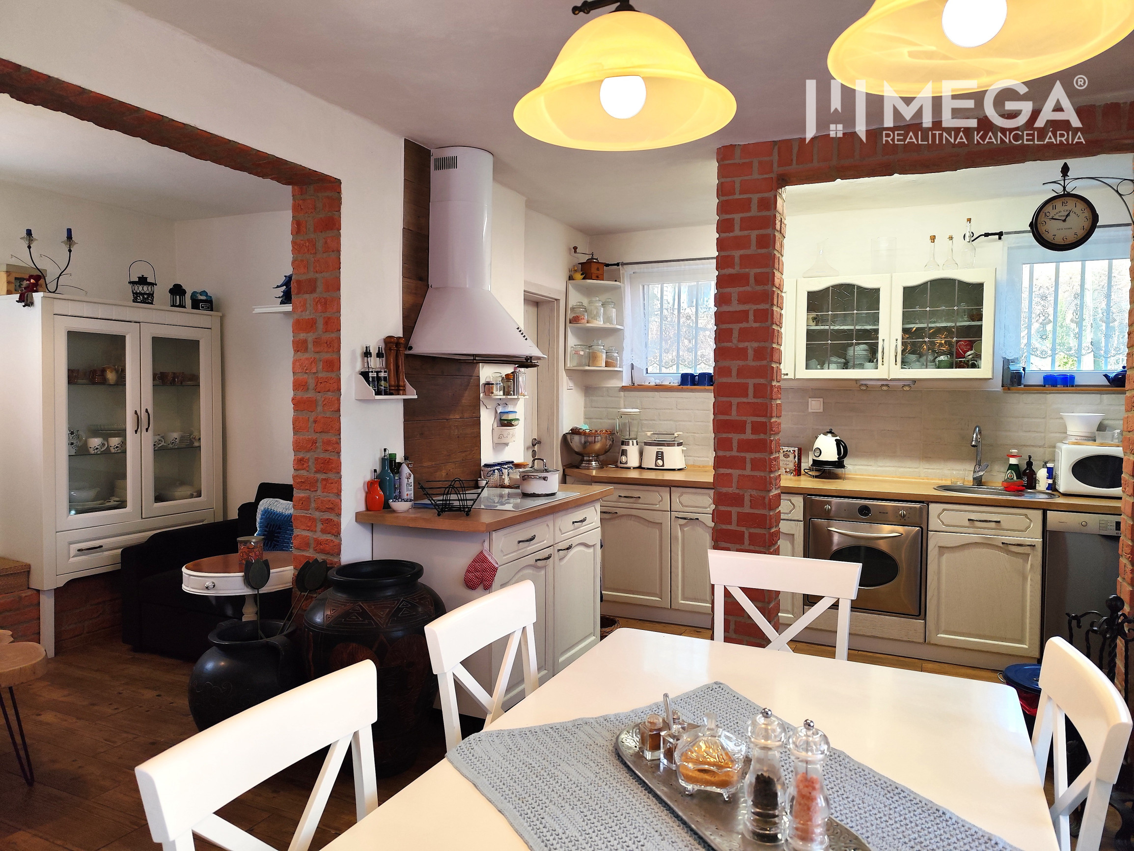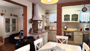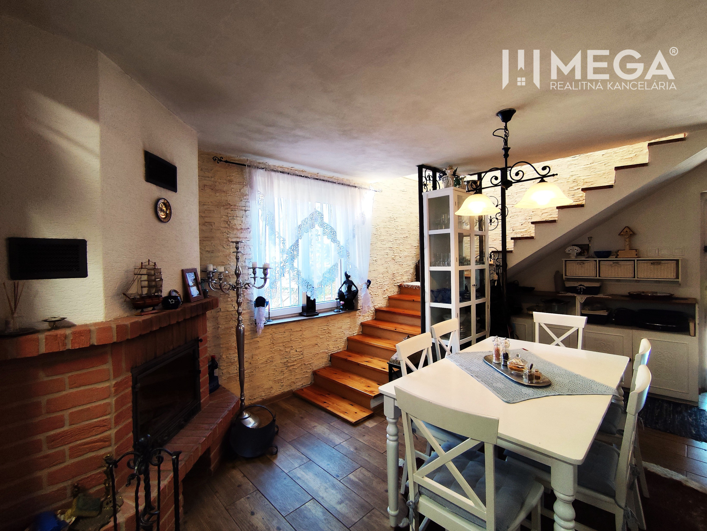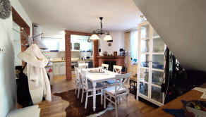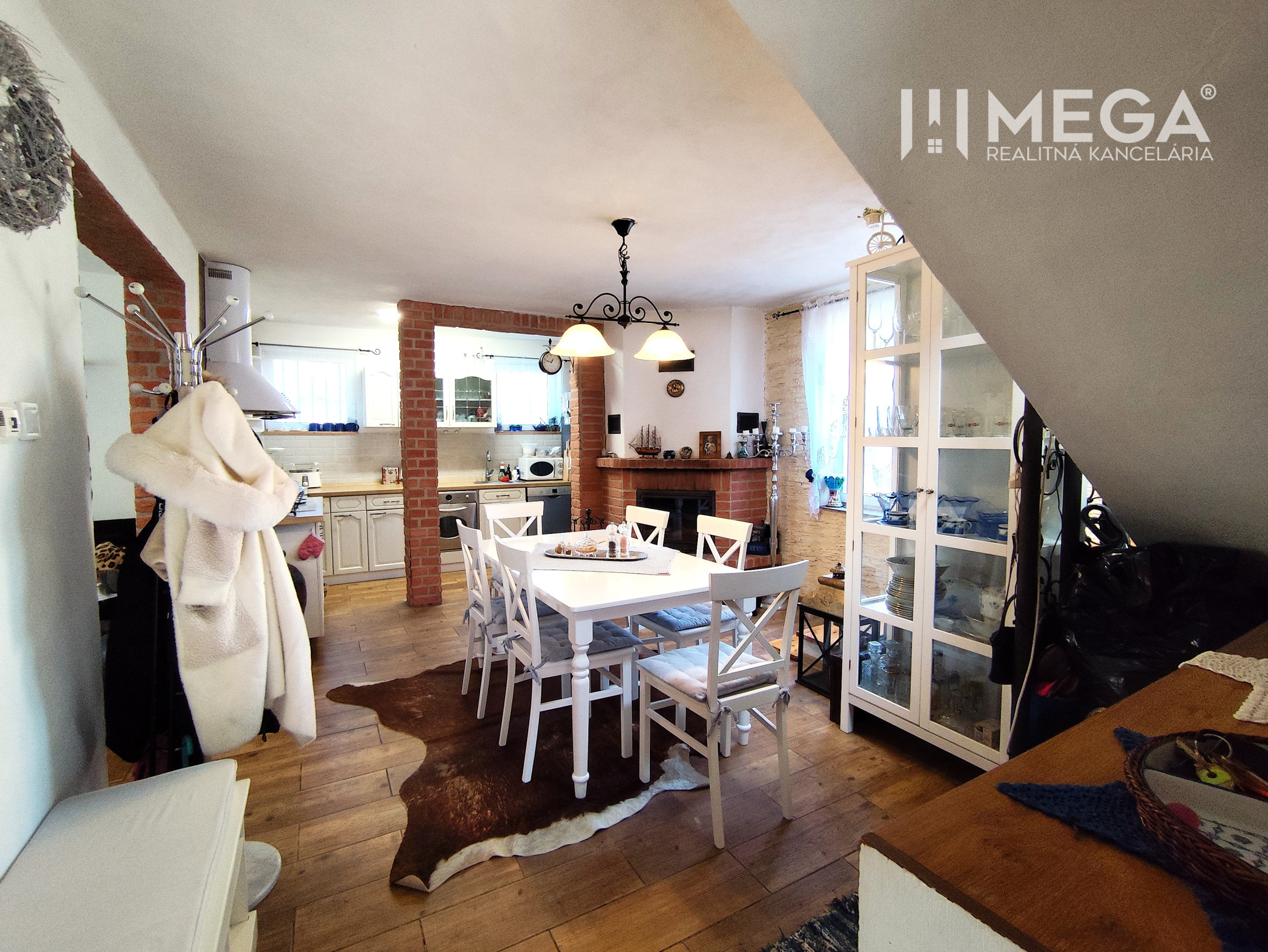 Interiér je ladený do obľúbeného provensálskeho štýlu, ktorý kombinuje eleganciu s útulnosťou. Dominuje mu priestranná kuchyňa prepojená s veľkorysou átriovou obývačkou, ktorej srdcom je štýlový krb. Celý priestor dýcha svetlom a vkusom.
