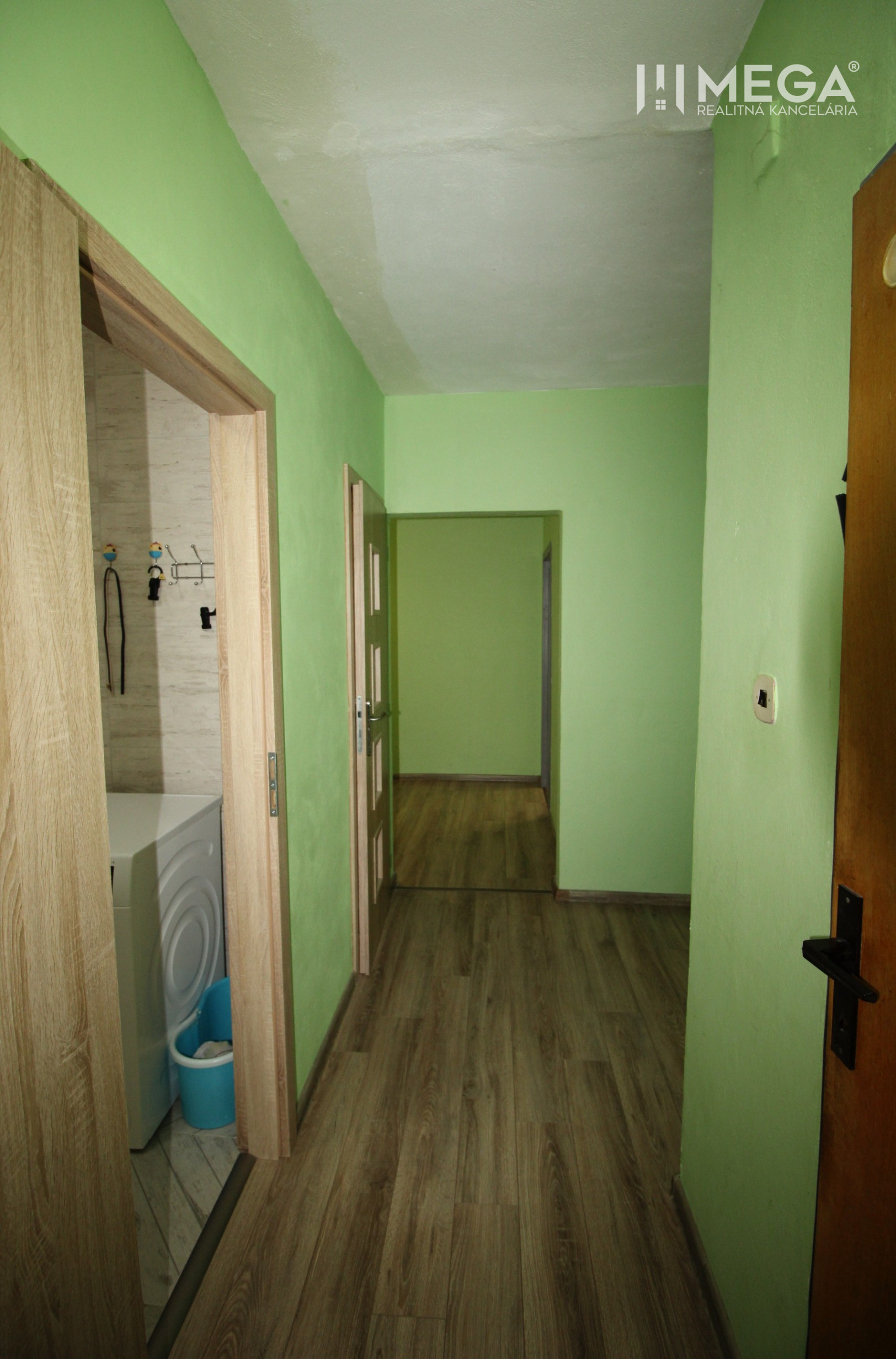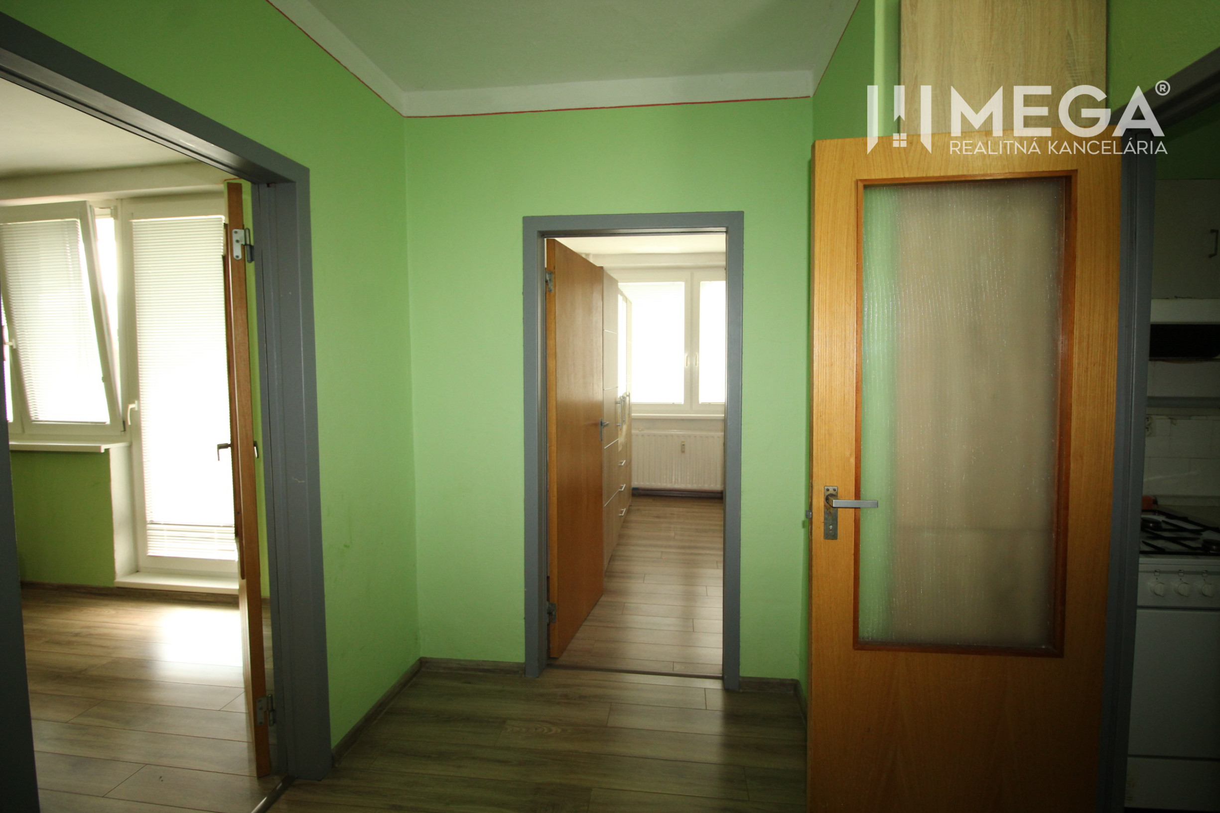 Byt prešiel staršou čiastočnou rekonštrukciou, ktorá zabezpečuje komfortné bývanie pre viacčlennú rodinu. Dispozícia pozostáva zo vstupnej chodby s veľkým šatníkom, priestrannej obývacej izby, kuchyne vybavenej spotrebičmi, spálne a dvoch samostatných detských izieb (prípadne pracovní).